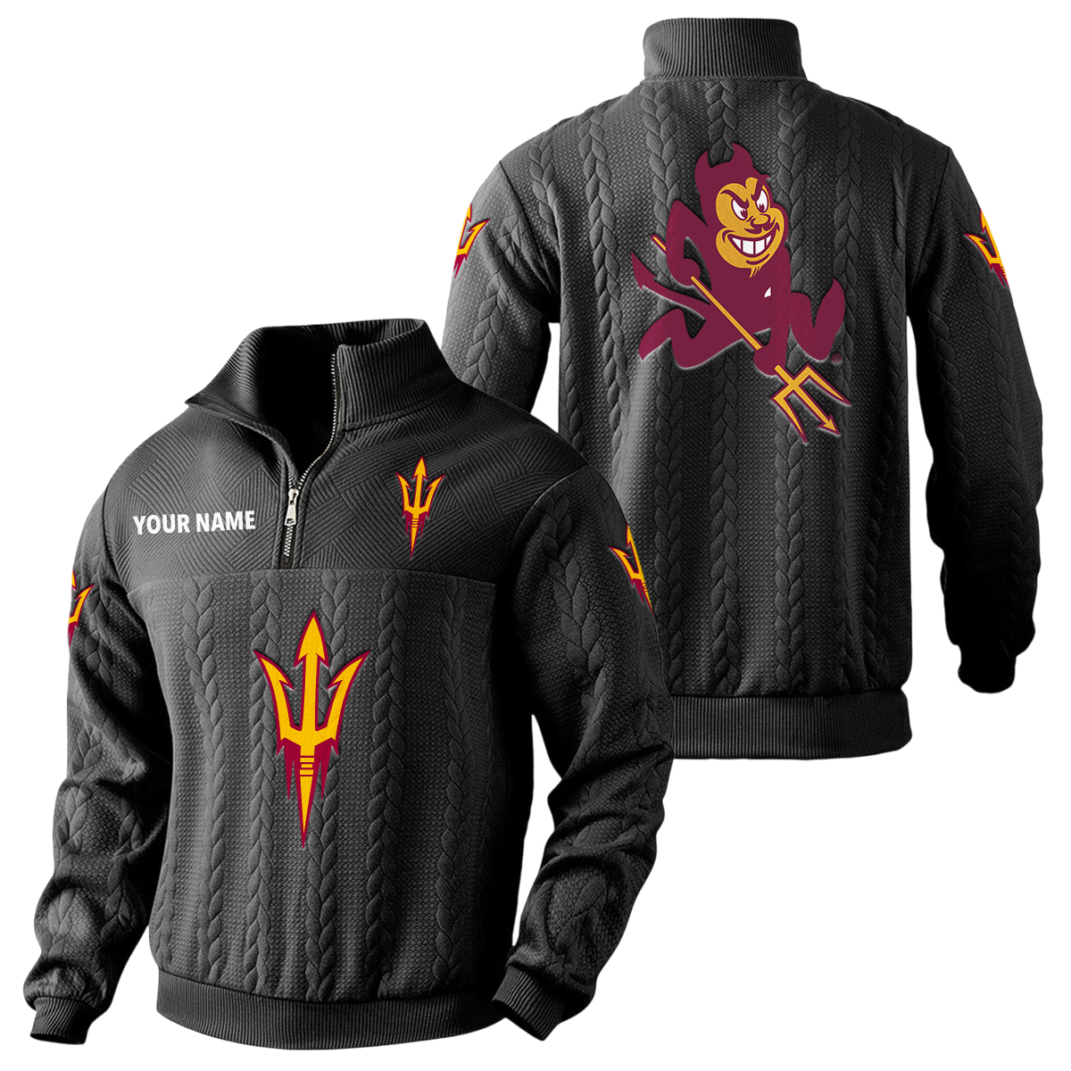 Arizona State Sun Devils Quarter-Zip Sweatshirt Stand Collar Custom Name