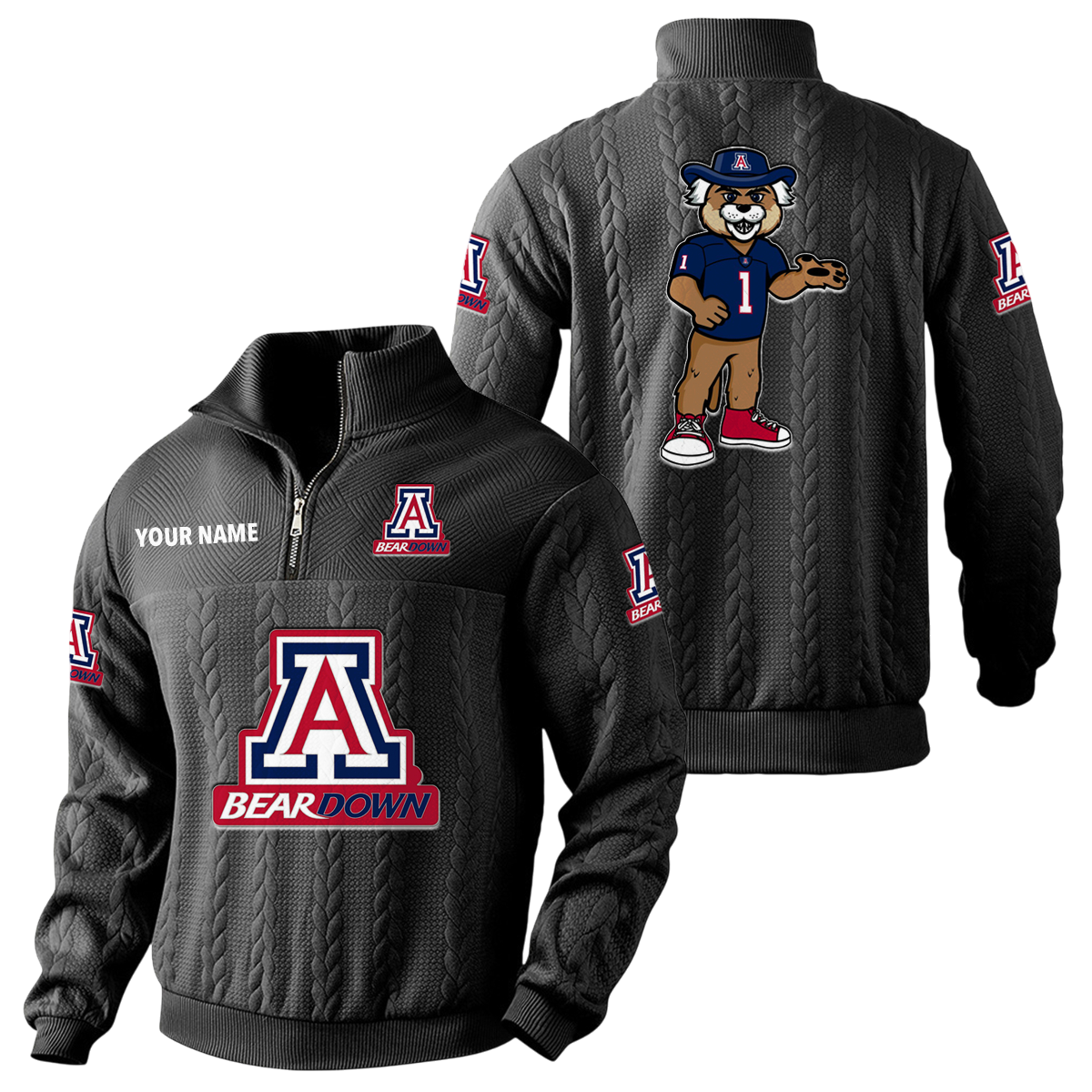 Bear Down Arizona Quarter-Zip Sweatshirt Stand Collar Custom Name