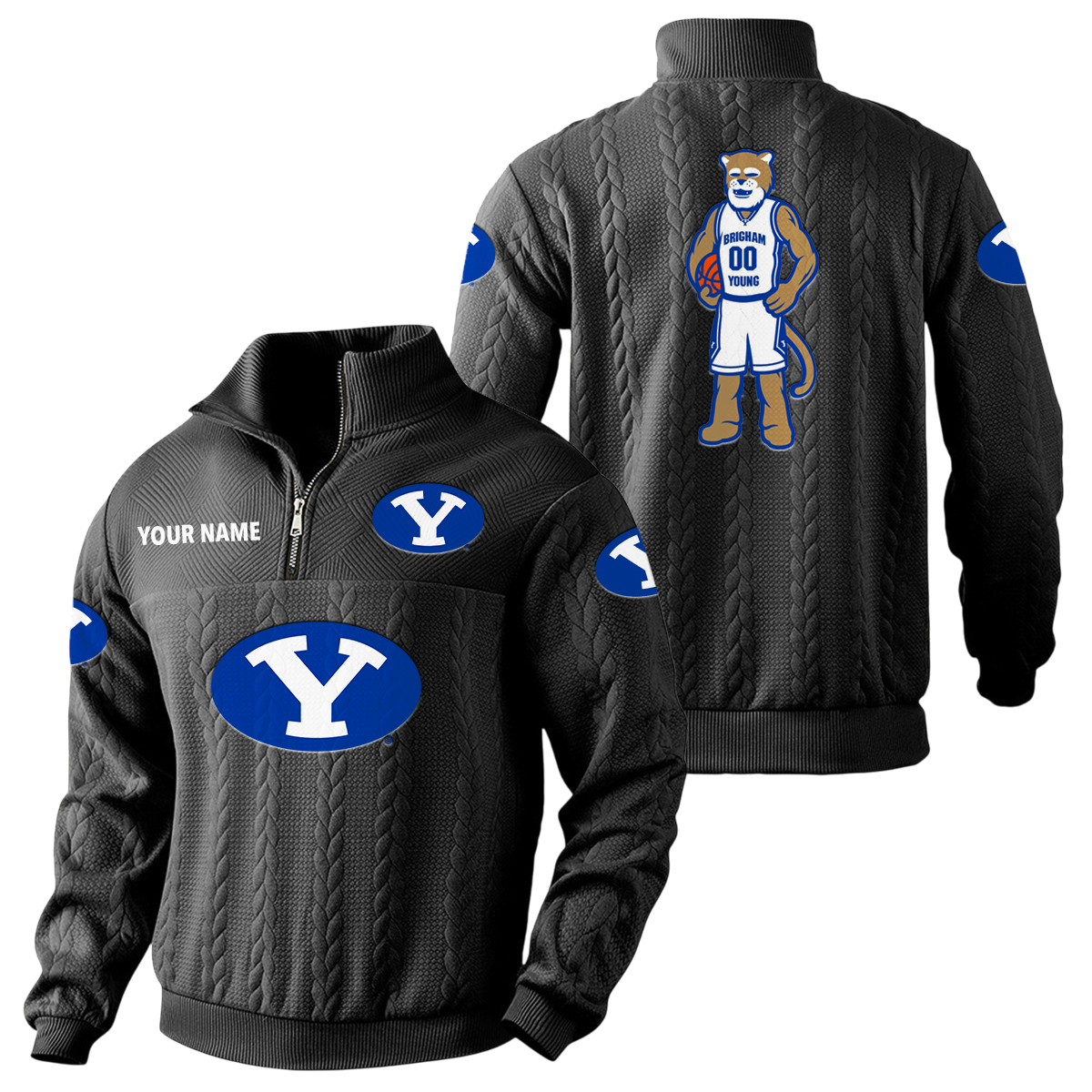 BYU Cougars Quarter-Zip Sweatshirt Stand Collar Custom Name
